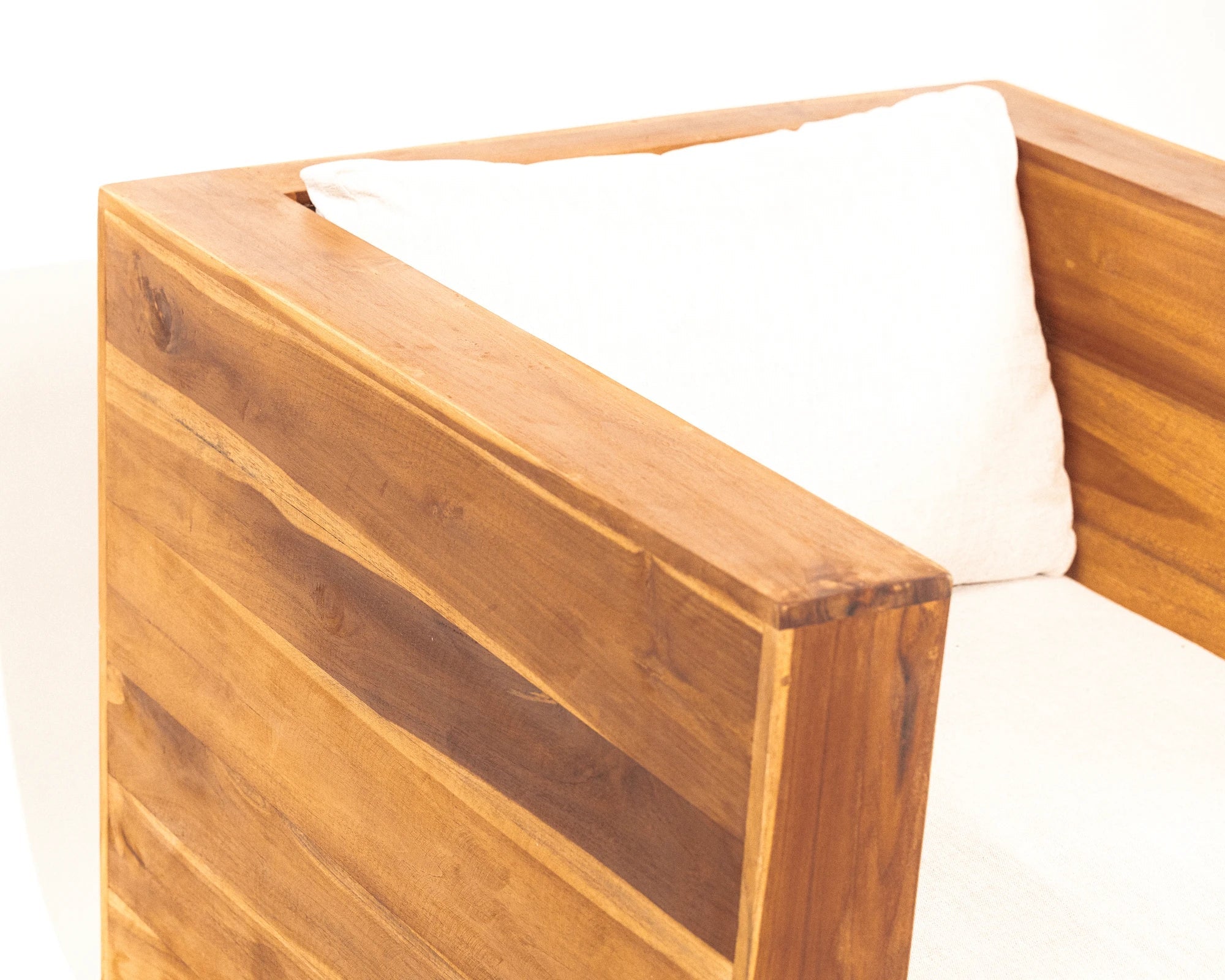 تم تصميم تنجيد القماش ليكون متينًا ومقاومًا للتآكل، مما يضمن أن تحافظ الأريكة على مظهرها وراحتها بمرور الوقت.مصادر مسؤولة: نظرًا لكونها من أعلى درجات الجودة وحاصلة على شهادة "الخشب القانوني الإندونيسي"، يتم الحصول على خشب الساج لدينا من جزيرة جاوة في إندونيسيا، حيث نعمل بشكل وثيق مع الحكومة لإعادة زراعة الأشجار وضمان التصنيع المستدام.