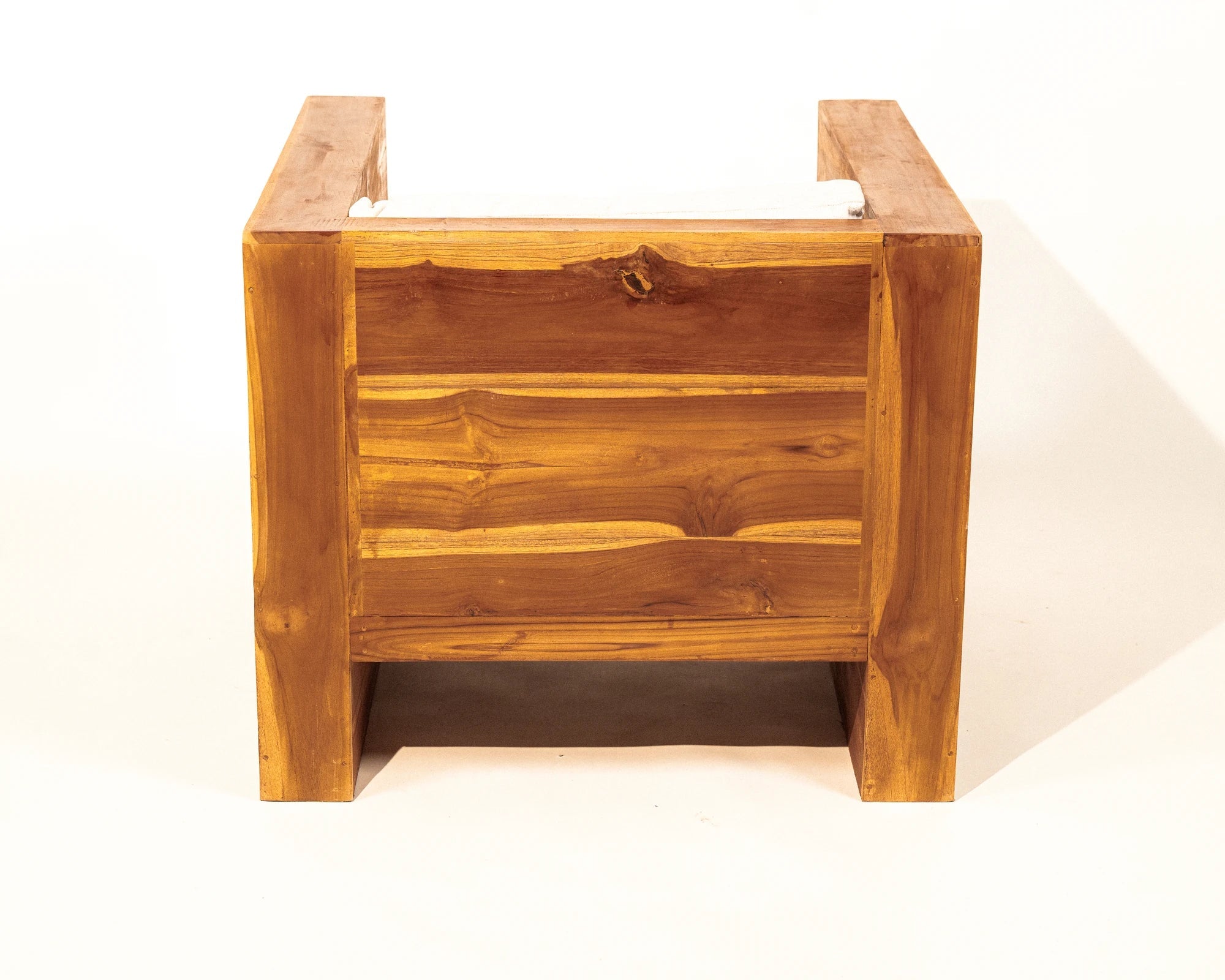 الاستخدام: هذه القطعة مثالية للأثاث الداخلي. ومع ذلك، بفضل المتانة الطبيعية لخشب الساج ومقاومته للرطوبة، يمكن أيضًا أخذها إلى الخارج من حين لآخر، أو استخدامها في أماكن خارجية مغطاة.